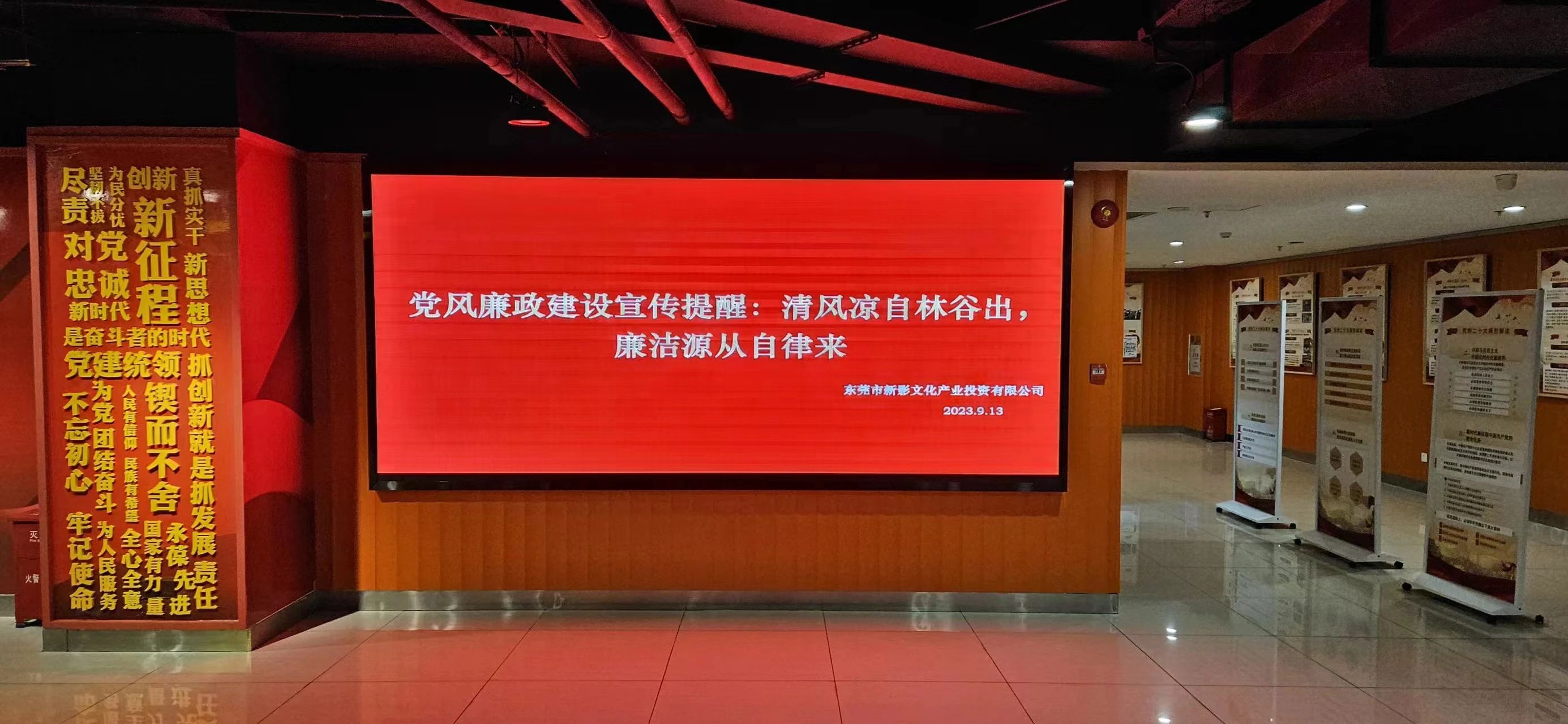 打造“流动阵地”,在公司微信公众号、视频号广泛宣传“廉润莞邑”系列公益广告;在新影文化公司“主题党建影厅”“莞篮子”农贸市场等公共场所植入清廉元素,发挥流动宣传作用。